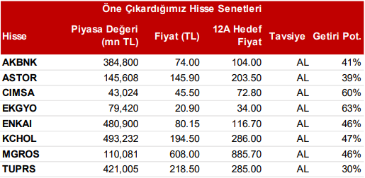 • Bankacılık; GYO; Çimento; Enerji; Perakende Gıda; Taahhüt; Petrol; Holding beğendiğimiz sektörler olarak öne çıkarken;