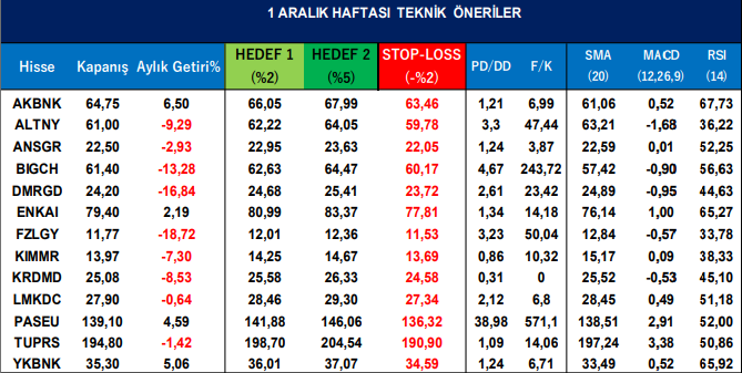 A1 Capital Haftalık Hisse Önerileri – (1-5 Aralık 2025)