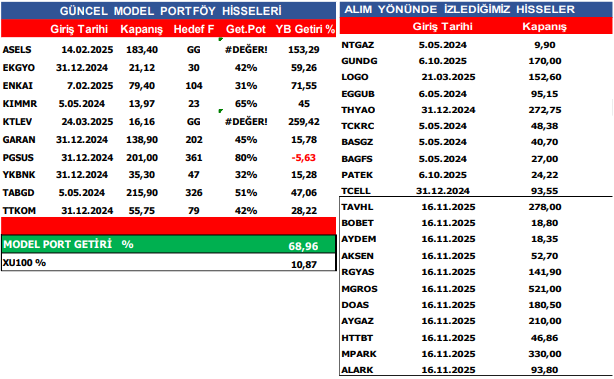 Orta ve Uzun Vadeli Model Portföy ve Yakın İzleme Hisselerimiz