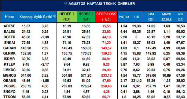 A1 Capital Haftalık Hisse Önerileri – (11-15 Ağustos 2025)