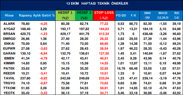 A1 Capital Haftalık Hisse Önerileri – (13-17 Ekim 2025)