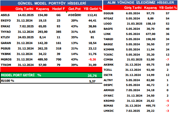Orta ve Uzun Vadeli Model Portföy ve Yakın İzleme Hisselerimiz