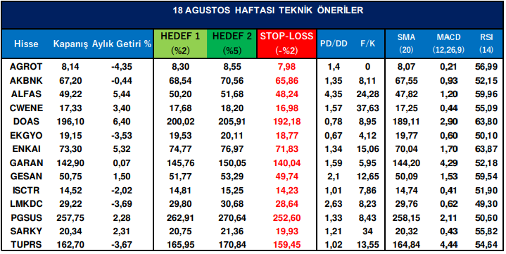 A1 Capital Haftalık Hisse Önerileri – (18-22 Ağustos 2025)