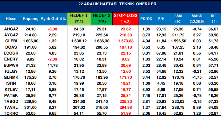 Kaynak: A1 Capital Haftalık Teknik Öneriler