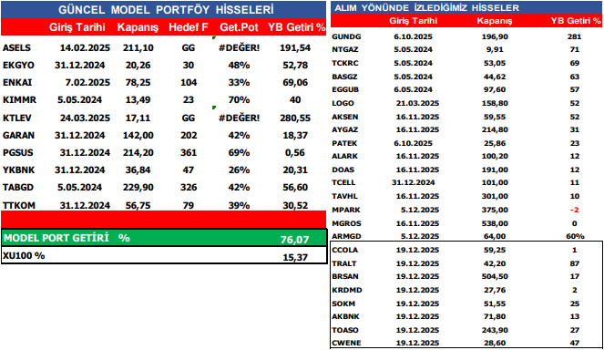 Orta ve Uzun Vadeli Model Portföy ve Yakın İzleme Hisselerimiz