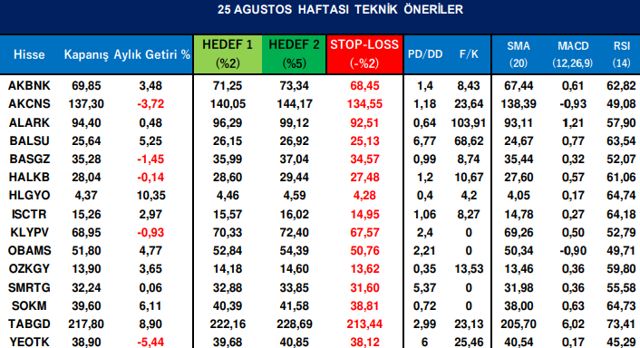 A1 Capital Haftalık Hisse Önerileri – (25-29 Ağustos 2025)