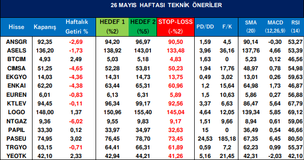 A1 Capital Haftalık Hisse Önerileri – (26-30 Mayıs 2025)