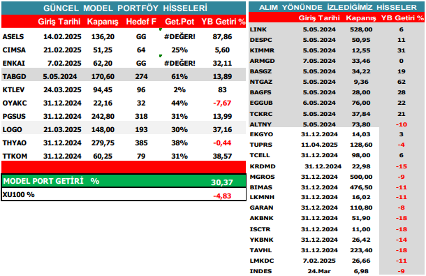 GÜNCEL HİSSE ÖNERİLERİNİ KAÇIRMAMAK İÇİN BURAYA TIKLAYARAK HEMEN X'TE BİZİ TAKİP EDİN!