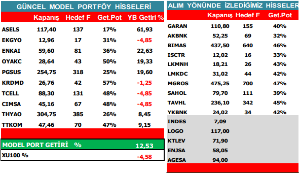 Orta ve Uzun Vadeli Model Portföy ve Yakın İzleme Hisselerimiz
