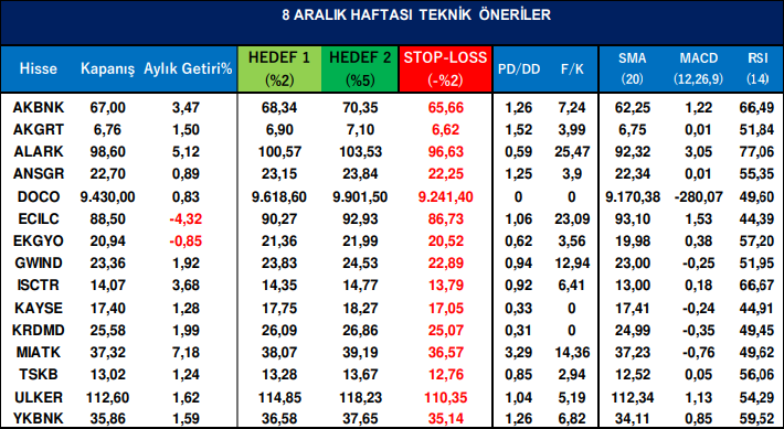 Kaynak: A1 Capital Haftalık Teknik Öneriler