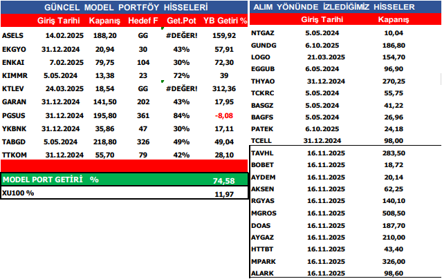 Orta ve Uzun Vadeli Model Portföy ve Yakın İzleme Hisselerimiz