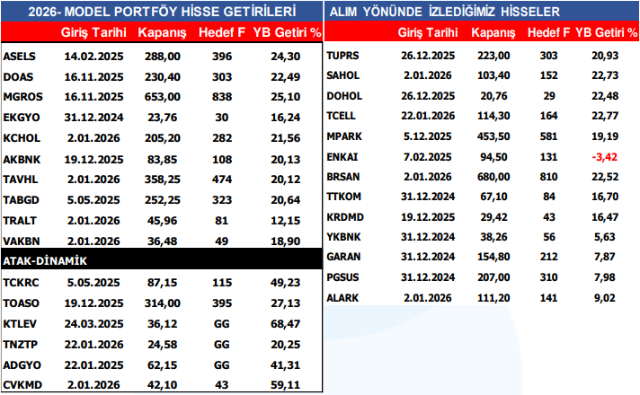Orta ve Uzun Vadeli Model Portföy ve Yakın İzleme Hisselerimiz