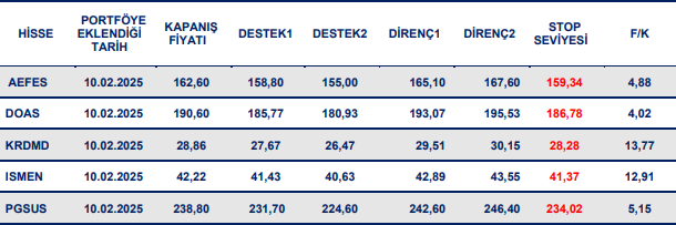 Kısa vadeli öneri listemize AEFES, DOAS, KRDMD, ISMEN ve PGSUS pay senetlerini dahil ediyoruz.