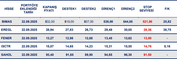 Kısa vadeli öneri listemize BIMAS, EREGL, FENER, ISCTR ve SAHOL pay senetlerini dahil ediyoruz.