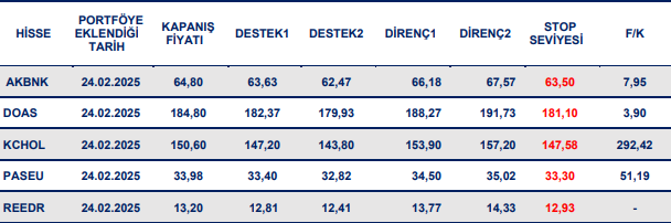 Kısa vadeli öneri listemize AKBNK, DOAS, KCHOL, PASEU ve REEDR pay senetlerini dahil ediyoruz.