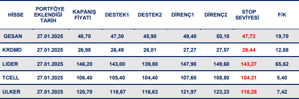 Kısa vadeli öneri listemize GESAN, KRDMD, LIDER, TCELL ve ULKER pay senetlerini dahil ediyoruz.
