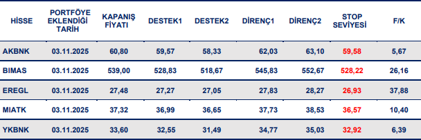 Kısa vadeli öneri listemize AKBNK, BIMAS, EREGL, MIATK ve YKBNK pay senetlerini dahil ediyoruz.