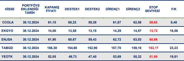 Kısa vadeli öneri listemize CCOLA, EKGYO, ENJSA ve YEOTK pay senetlerini dahil ediyoruz. TABGD pay senedini portföyümüzde tutmaya devam ediyoruz.