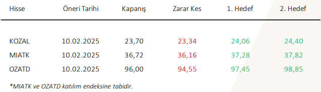 Ahlatcı Yatırım Günlük Hisse Önerileri – (10.02.2025)