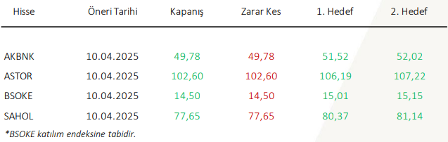 Ahlatcı Yatırım Günlük Hisse Önerileri – (10.04.2025)