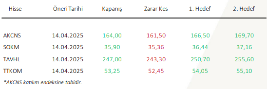 Ahlatcı Yatırım Günlük Hisse Önerileri – (14.04.2025)