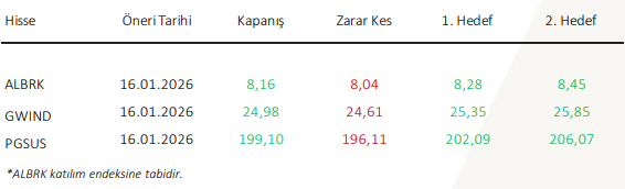 Ahlatcı Yatırım Günlük Hisse Önerileri – (16.01.2026)