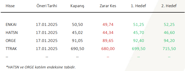 Ahlatcı Yatırım Günlük Hisse Önerileri – (17.01.2025)