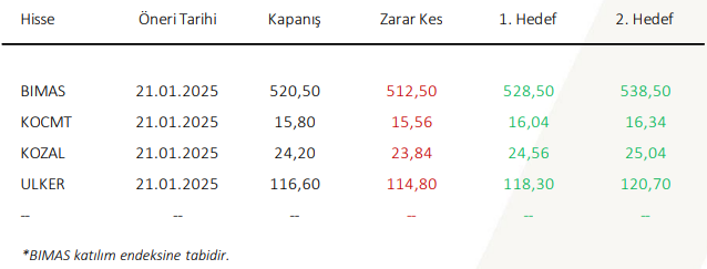 Ahlatcı Yatırım Günlük Hisse Önerileri – (21.01.2025)
