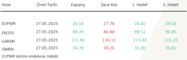 Ana endeks gün içerisinde en yüksek 9427 seviyesini test ederken, en düşük 9296 seviyesine geriledi. Haftanın ikinci işlem gününe başlarken geri çekilme eğiliminin devamı halinde sırasıyla 9250 ve 9050 seviyesi destek olarak takip edilirken, olası yükseliş hareketlerinin gündeme gelmesi durumunda 9520 ve 9760 seviyeleri direnç olarak izlenebilir.