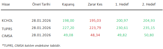 Ahlatcı Yatırım Günlük Hisse Önerileri – (28.01.2026)