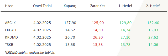 Ahlatcı Yatırım Günlük Hisse Önerileri – (4.02.2025)