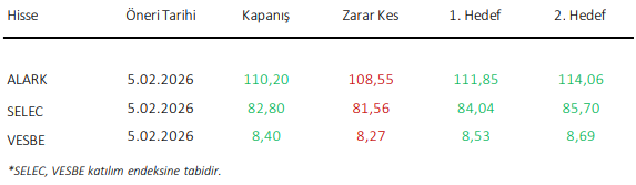 Borsa İstanbul 100 Endeksi Çarşamba gününü yüzde 0,11 değişim ile 13891 seviyesinden tamamladı. Gün içerisinde endeks en düşük 13835 seviyesini görürken en yüksek 13998 seviyesine ulaştı. Borsa İstanbul 100 Endeksi’nde bugün 13981 öncelikli direnç noktası olurken bu seviyenin aşılması ve yukarı yönlü hareketliliğin devam etmesi durumunda 14071 ve 14144 seviyeleri direnç noktası olarak takip edilebilir. Olası aşağı yönlü hareketlerde ise 13818 öncelikli destek olurken 13745 ve 13655 seviyeleri sonraki destek noktaları olarak izlenebilir.