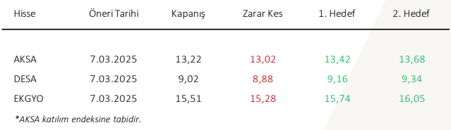 Ahlatcı Yatırım Günlük Hisse Önerileri – (7.03.2025)