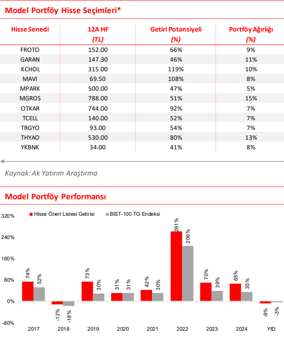 Kaynak: Ak Yatırım Hisse Senedi Portföy Önerisi