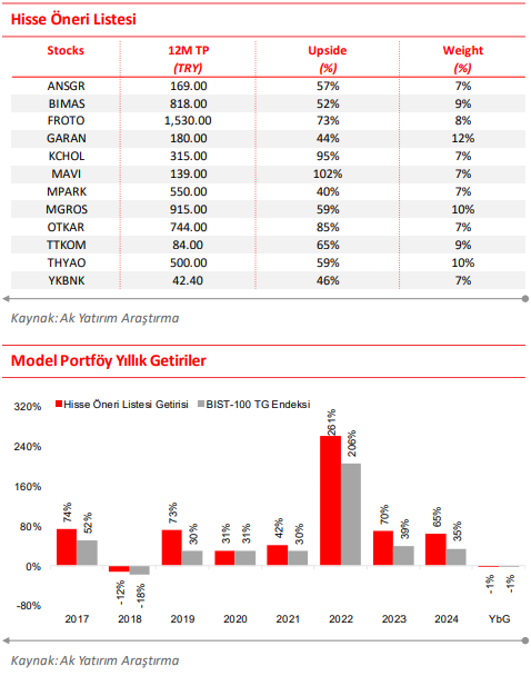 İş Bankası’nı öneri listesinden çıkardık: Küresel görünümde süregelen belirsizlikler göz önüne alındığında, 2025 yılının ilk yarısında cam iştirakinde toparlanma ihtimali zayıf görünüyor. Hisseyi daha önce iştirak performansında olası toparlanma ve enflasyon muhasebesinin olumlu etkisi nedeniyle eklemiştik.