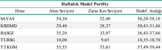Kaynak: ALB Yatırım Haftalık Model Portföy