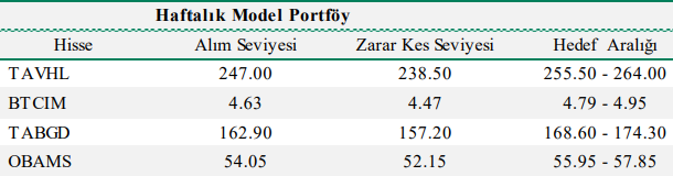 Kaynak: ALB Yatırım Haftalık Model Portföy