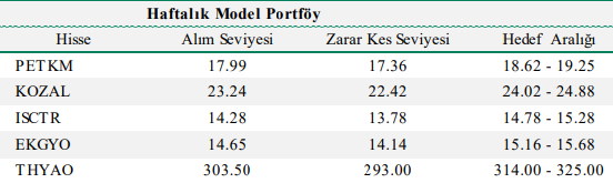 Haftalık Model Portföy