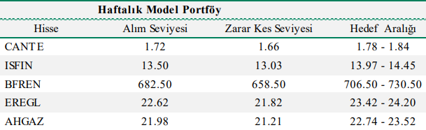 Kaynak: ALB Yatırım Haftalık Model Portföy