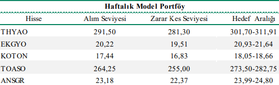 Kaynak: ALB Yatırım Haftalık Model Portföy