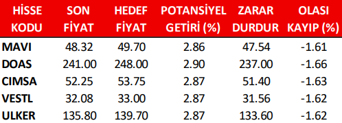 Günlük Pay (Hisse) Senedi Öneri Listesi