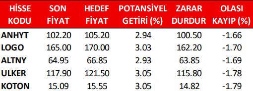Günlük Pay (Hisse) Senedi Öneri Listesi