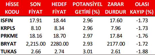 Günlük Pay (Hisse) Senedi Öneri Listesi