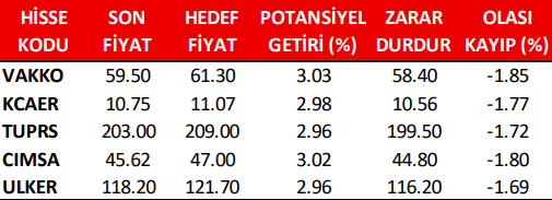 Günlük Pay (Hisse) Senedi Öneri Listesi