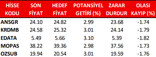 Günlük Pay (Hisse) Senedi Öneri Listesi