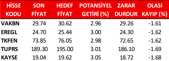 Günlük Pay (Hisse) Senedi Öneri Listesi