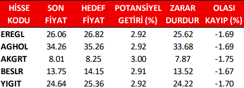 Günlük Pay (Hisse) Senedi Öneri Listesi