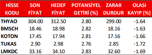 Günlük Pay (Hisse) Senedi Öneri Listesi