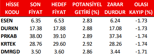 Günlük Pay (Hisse) Senedi Öneri Listesi