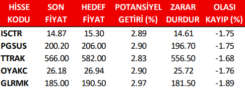 Günlük Pay (Hisse) Senedi Öneri Listesi